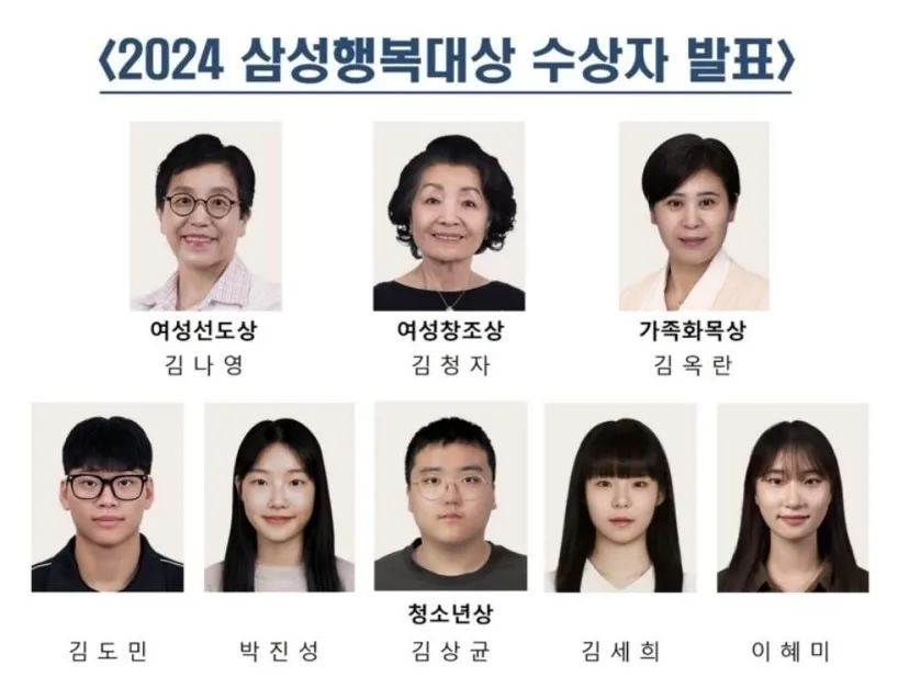 삼성생명공익재단이 30일 ‘2024 삼성행복대상 수상자’를 선정해 발표했다.