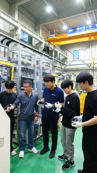 학습기업인 한 중소기업에서 기업 현장 교사가 학습근로자를 대상으로 기계 사용법 등을 설명하고 있다. 서울신문 DB