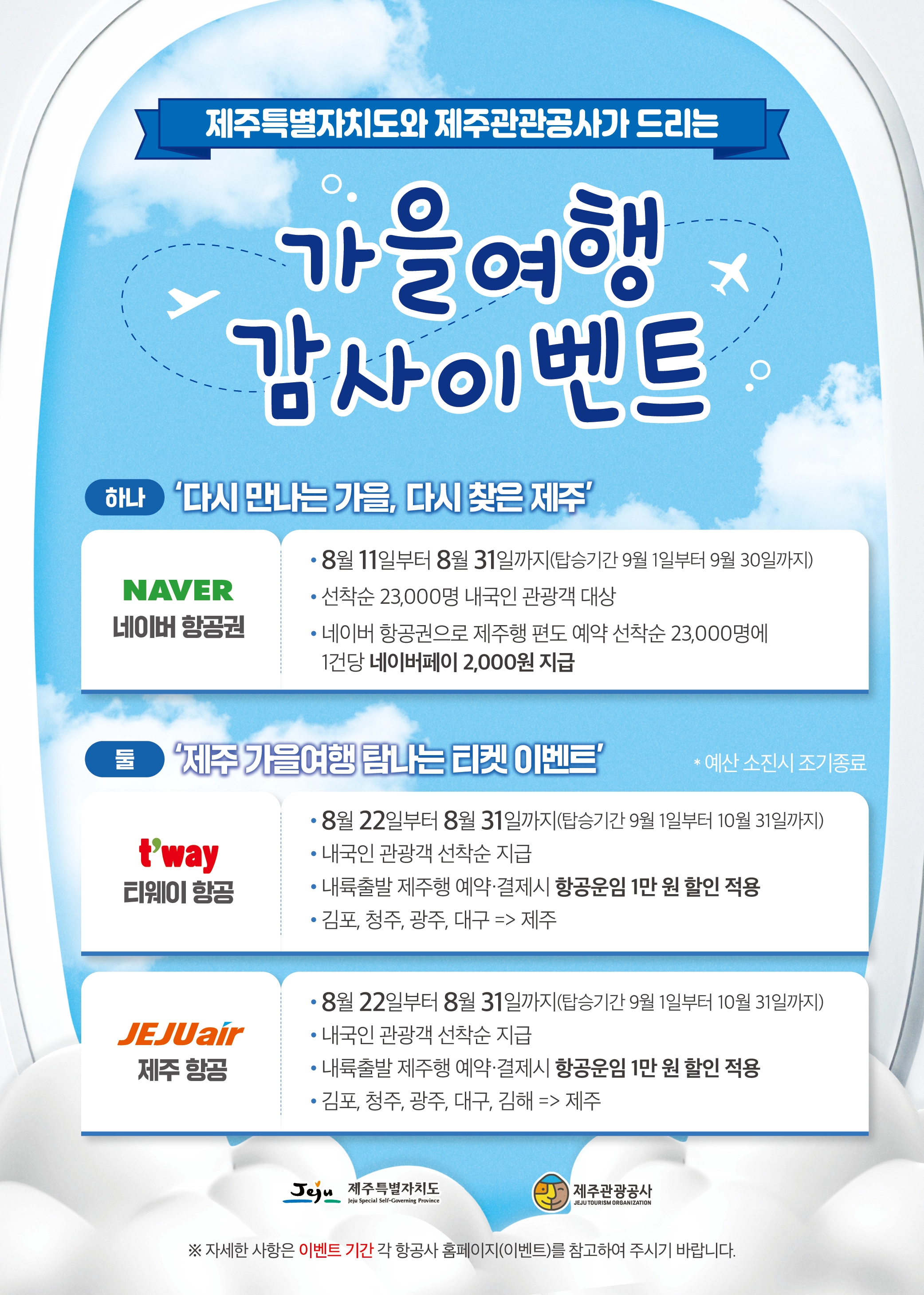 31일까지 온라인채널 제주가을여행 감사 이벤트