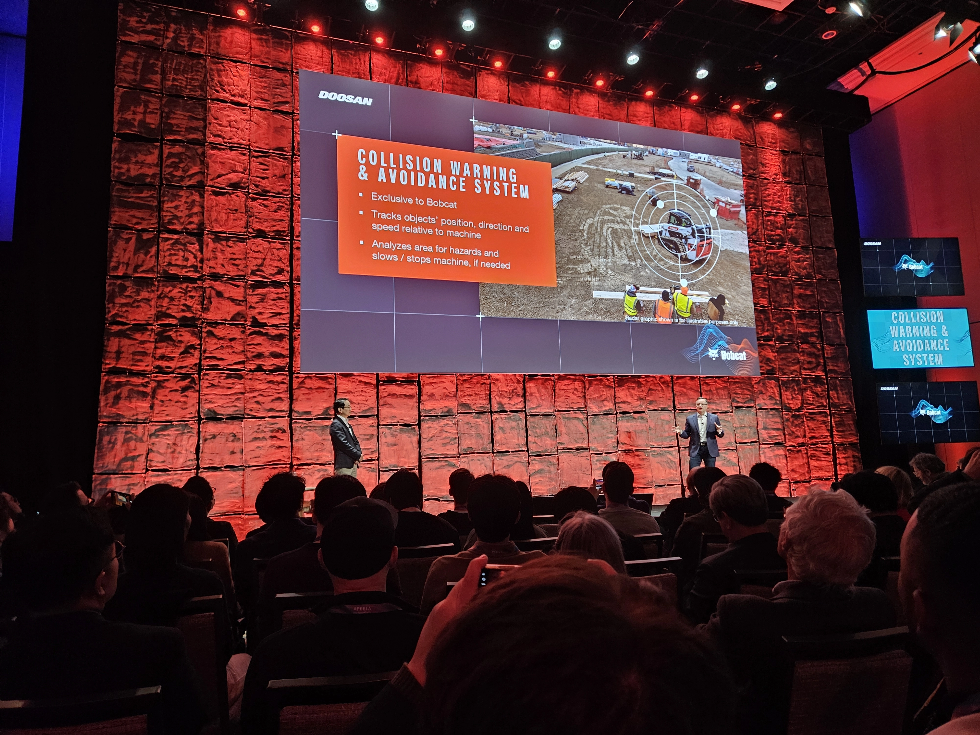 이 외에도 두산밥캣은 ▲장비의 종류나 제조사와 관계없이 적용할 수 있는 모듈형 고속 충전 표준 배터리팩’ ▲모듈형 설계로 조종석 유무, 바퀴·트랙 옵션, 완전 전동·디젤·하이브리드·수소 등 다양한 동력원을 적용할 수 있는 콘셉트 장비 ‘로그X3’ ▲고성능 레이더로 주변 물체의 위치·속도·방향을 감지해 위험 상황 시 자동으로 감속하거나 정지하는 ‘충돌 경고 및 회피 시스템’ ▲운전석 유리창에 적용돼 360도 영상과 충돌 경고, 장비 상태를 투명·차광·터치 스크린에 직관적으로 표시하는 ‘차세대 디스플레이’를 소개했다.