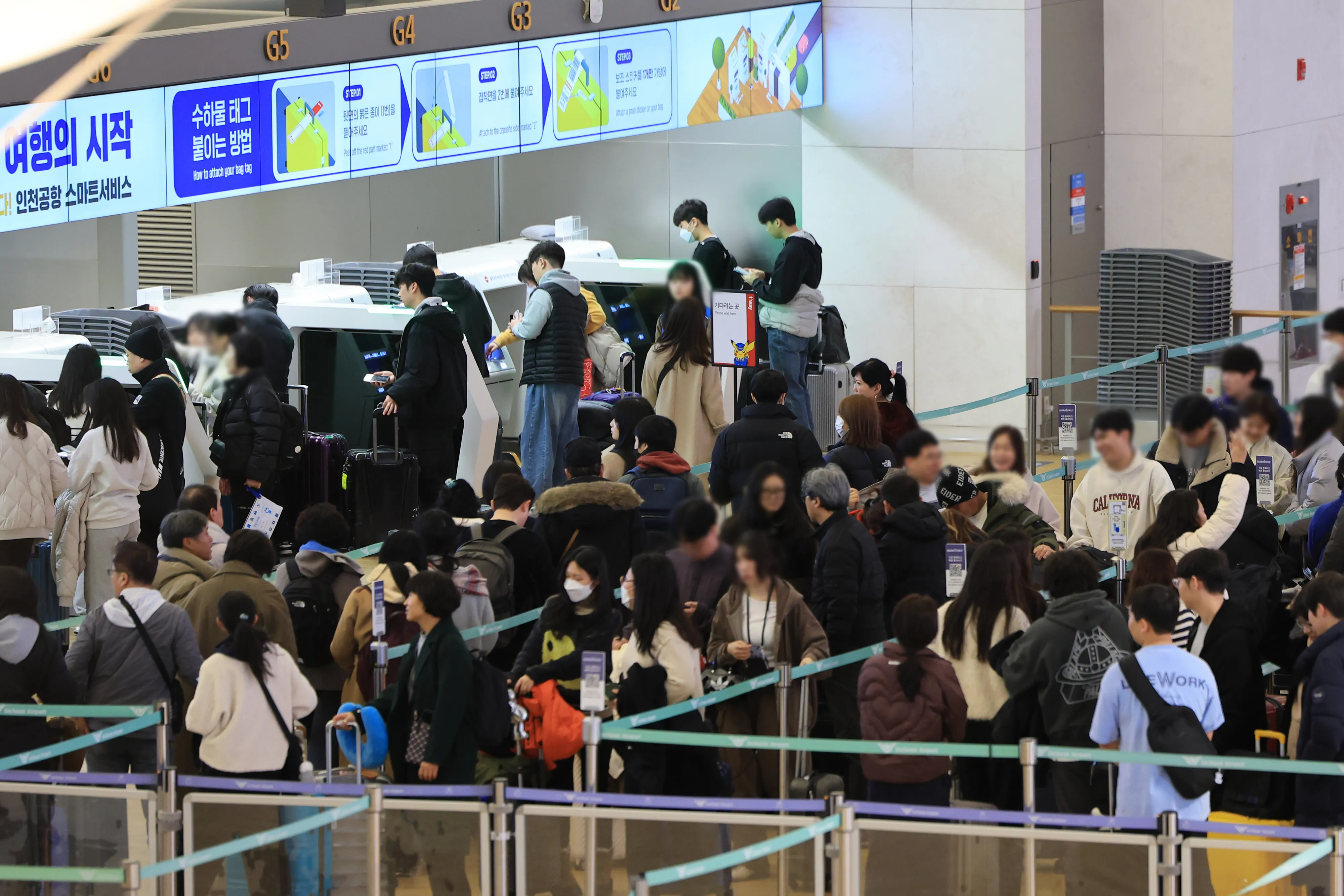 설 명절 연휴를 앞둔 22일 오전 인천국제공항 제1여객터미널 출국장에서 승객들이 탑승 수속을 위해 줄을 서고 있다. 2025.1.22 연합뉴스