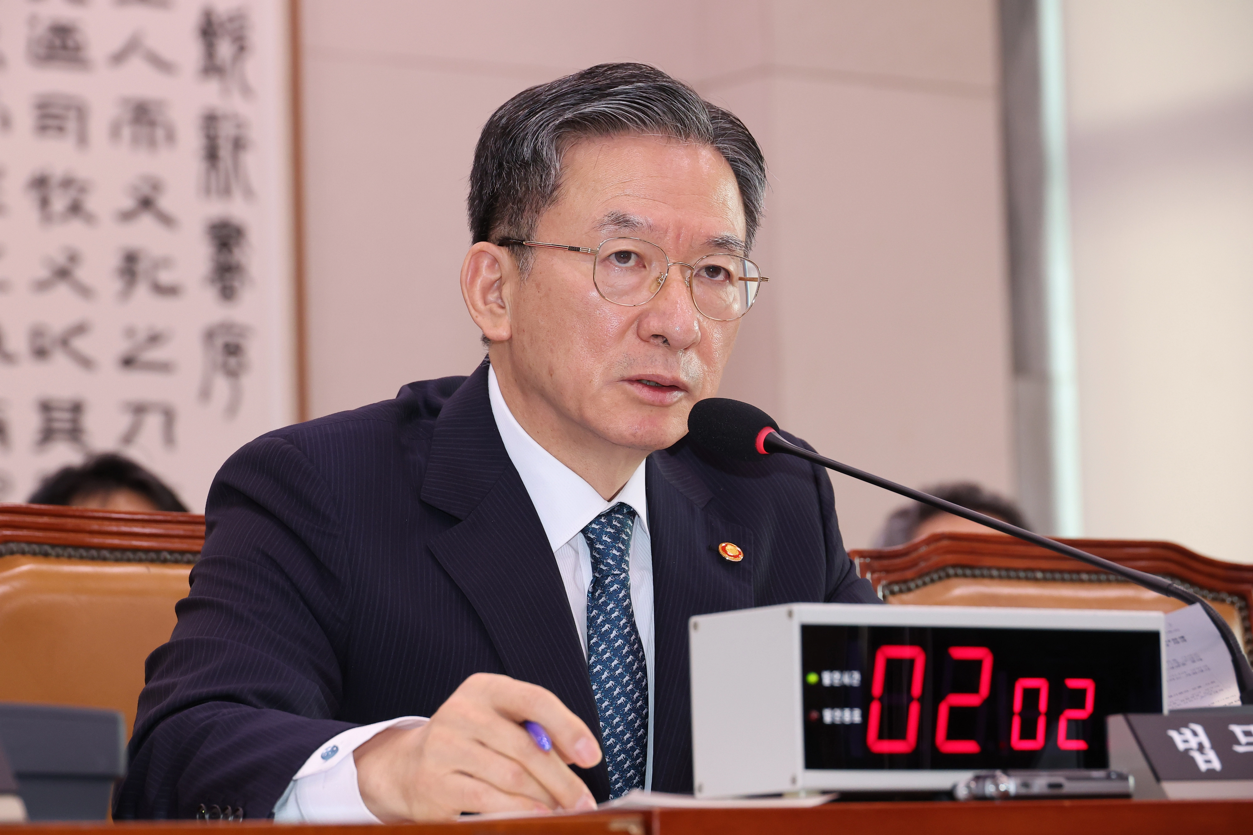 정성호 법무부 장관이 지난 14일 서울 여의도 국회에서 열린 법무부 등에 대한 법제사법위원회 국정감사에서 의원 질의에 답하고 있다. 연합뉴스