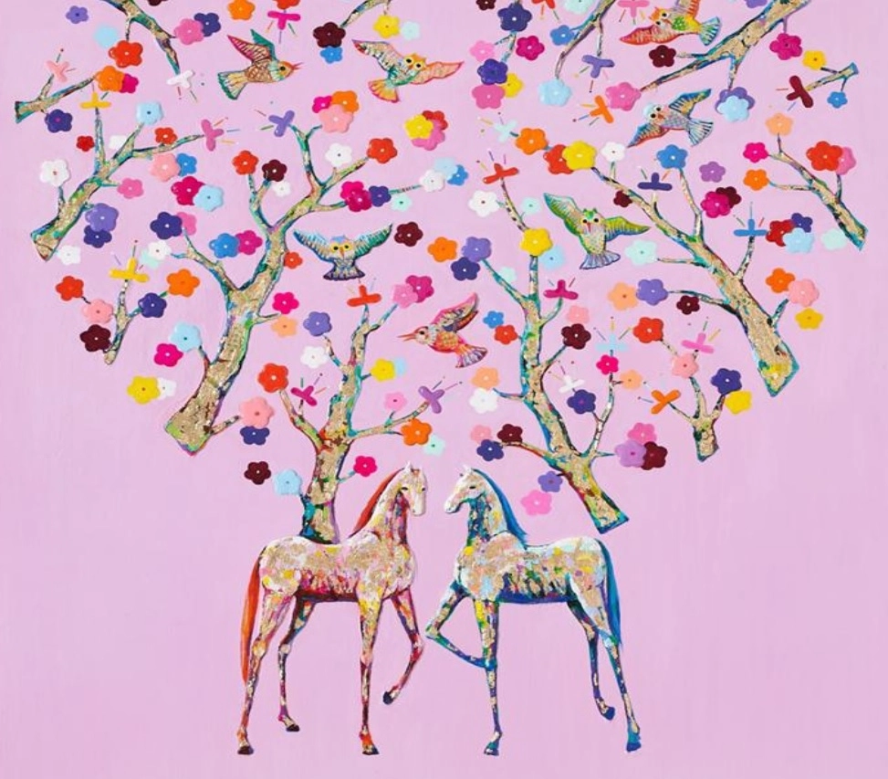 이번 전시의 중심을 이루는 조형 언어는 말과 올빼미 등 동물을 모티브로 한 형상에서 출발한다. 특히 말을 주제로 한 작품에서 나타나는 역동적인 선(線)은 억압으로부터 탈주하고 자유를 갈망하는 인간의 의지를 상징한다. 부드러우면서도 힘 있는 곡선과 따뜻한 색면의 조화는 현대인의 심리적 긴장을 완화하고 내면의 균형을 찾아가는 과정을 그렸다. 또 개인의 기억이 지닌 정서적 가치를 현대적인 회화 언어로 확장하는 작업으로 보인다. 정미 작가는 삶과 관계에서 오는 보편적인 감성을 독창적인 조형 시스템과 결합함으로써, 회화가 여전히 살아 있는 위로의 본질임을 말하고 있다. 특히 작품 속에 등장하는 동물의 형상이나 자연적 요소들은 전통적인 상징성을 넘어, 작가 고유의 감성으로 번역된 ‘행복의 기호’로 기능한다. 정미 작가는 “관람객들이 ‘붉은 말의 해’인 2026년, 화폭에 담긴 고대 신화의 유니콘과 페가수스, 그리고 미네르바의 올빼미 등을 보면서 행운과 행복이 가득하길 기원한다‘고 말했다.