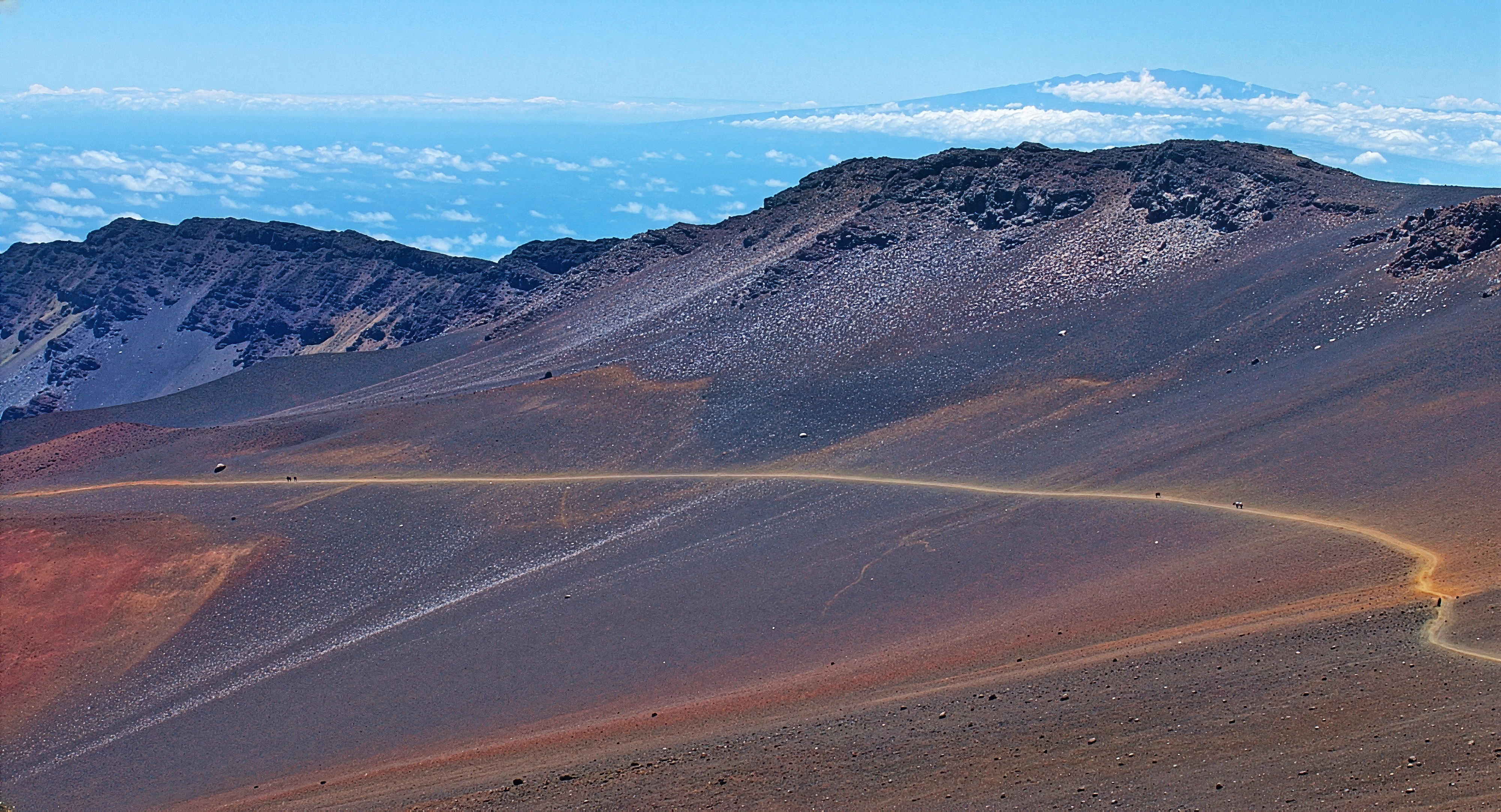 할레아칼라는 하와이어로 ‘태양의 집’이라는 뜻이다. 외계 행성에 온 듯한 휴화산 분화구는 새벽 무렵에 숨 막힐 정도로 다양한 색상의 일출을 선사한다. 하와이 사람들은 새벽에 나타나는 이 붉은 줄무늬를 ‘카헤 라’라고 부른다. 주로 시 같은 문학 작품에 흔히 쓰이는 표현이라는데 ‘새벽의 붉은 빛줄기’ 정도의 의미다. 태양이 중천으로 오르면 분화구 안에 여태 한 번도 본 적 없을 빨강, 분홍, 주황 등의 색조가 드러난다.