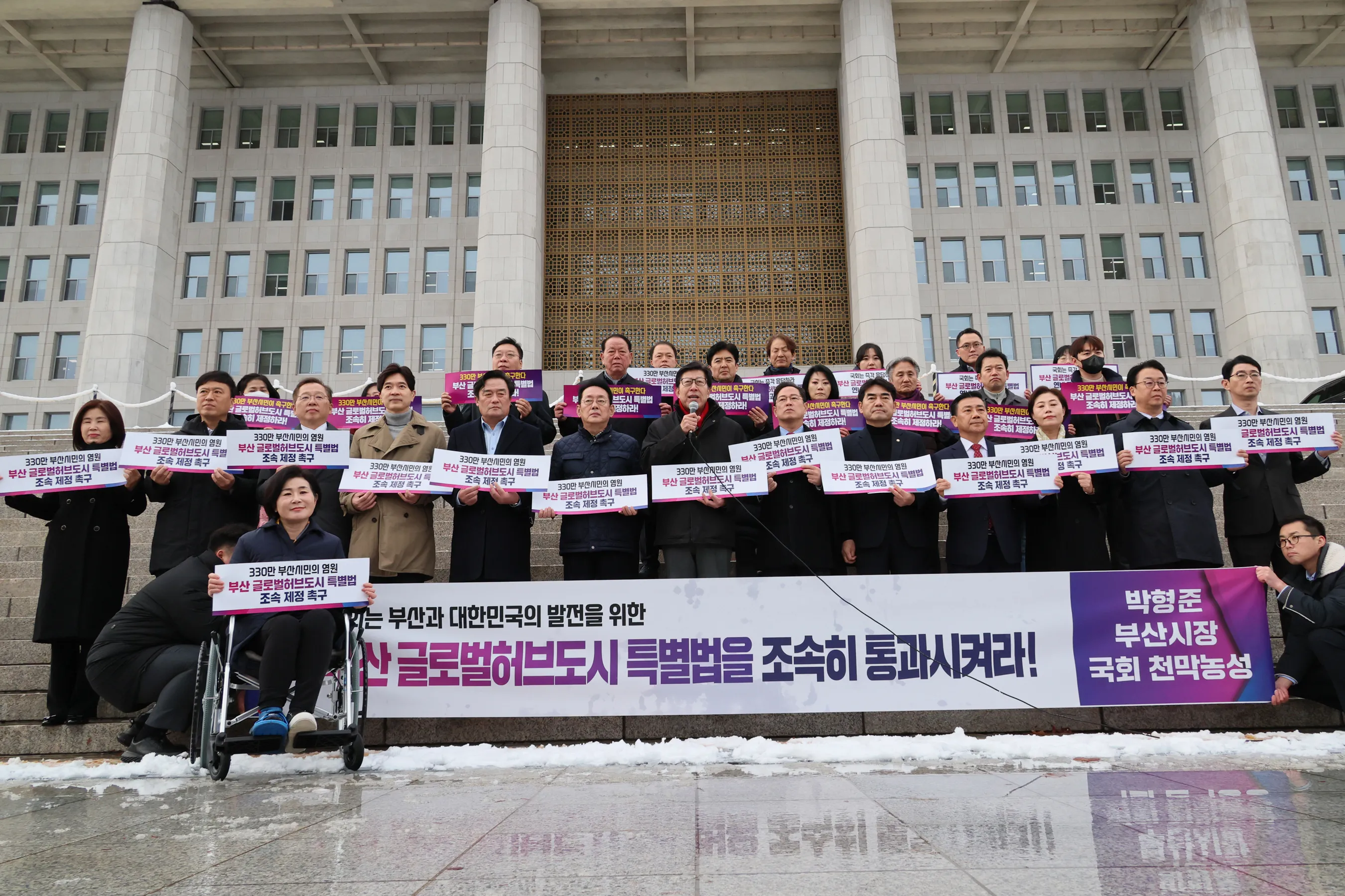부산시의 핵심 현안인 ‘부산 글로벌허브도시 조성에 관한 특별법’의 처리가 지연되면서 박형준 부산시장과 지역 국회의원 등이 국회 앞에서 연내 통과를 촉구하는 천막농성에 들어갔다.