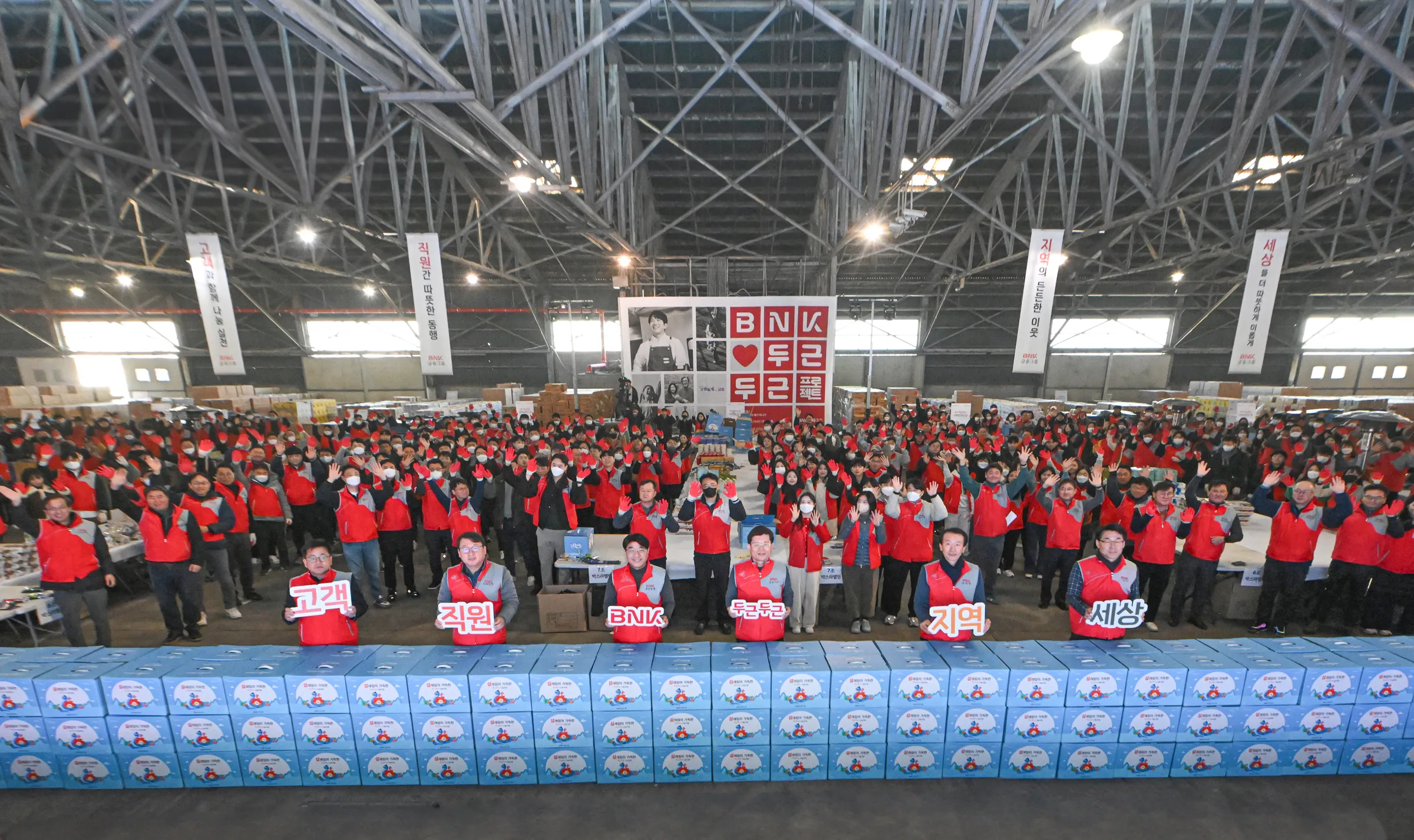 BNK금융그룹은 18일 부산 북항 제1부두 물류창고에서 그룹 경영진을 포함한 전 계열사 임직원이 참가한 가운데 새해 첫 번째 ‘BNK 사회공헌의 날’ 행사를 개최했다고 18일 밝혔다.