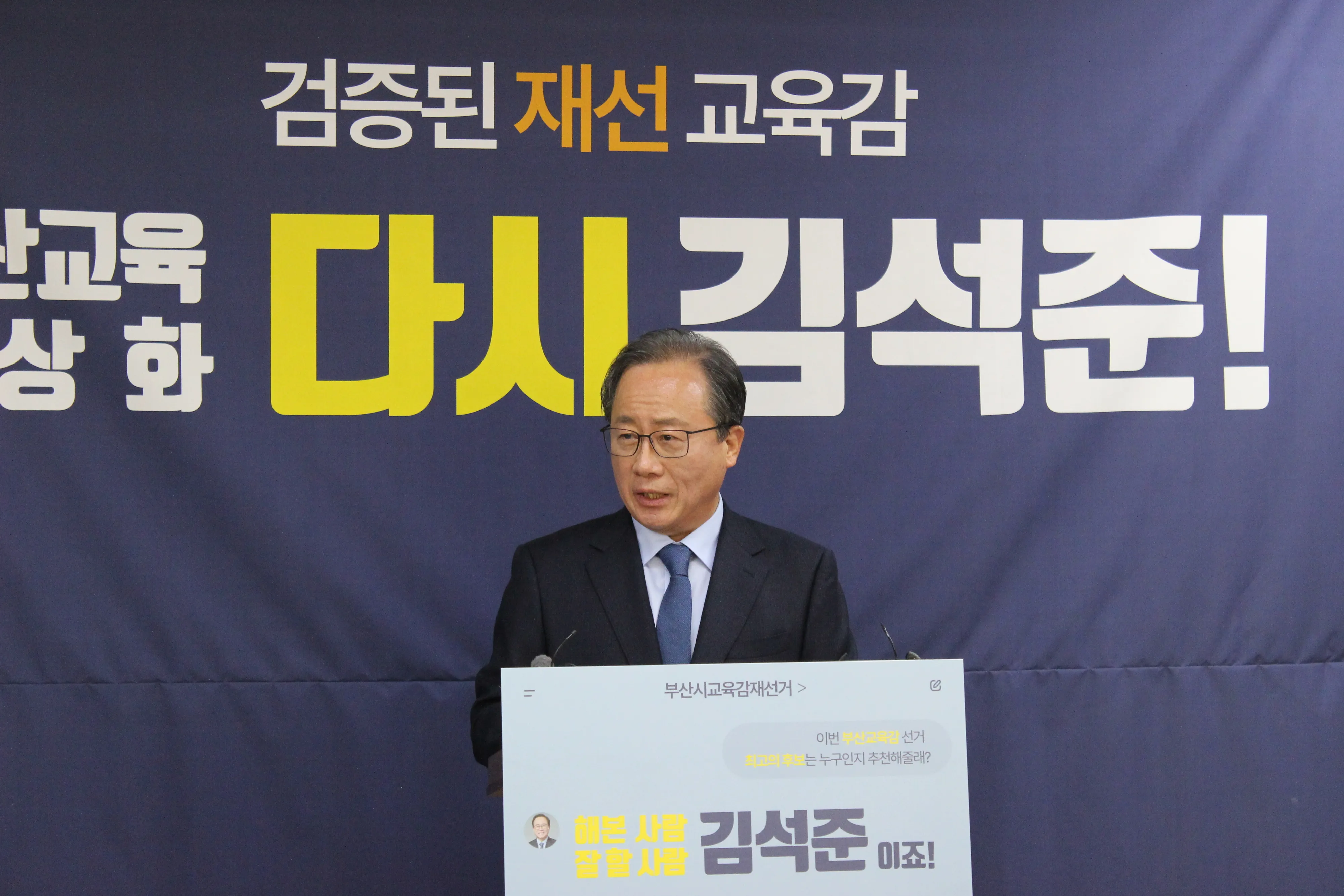 부산시교육감을 8년간 역임했던 김석준 전 교육감이 오늘 4월 2일로 예정된 부산시교육감 재선거 출마를 공식 선언했다.