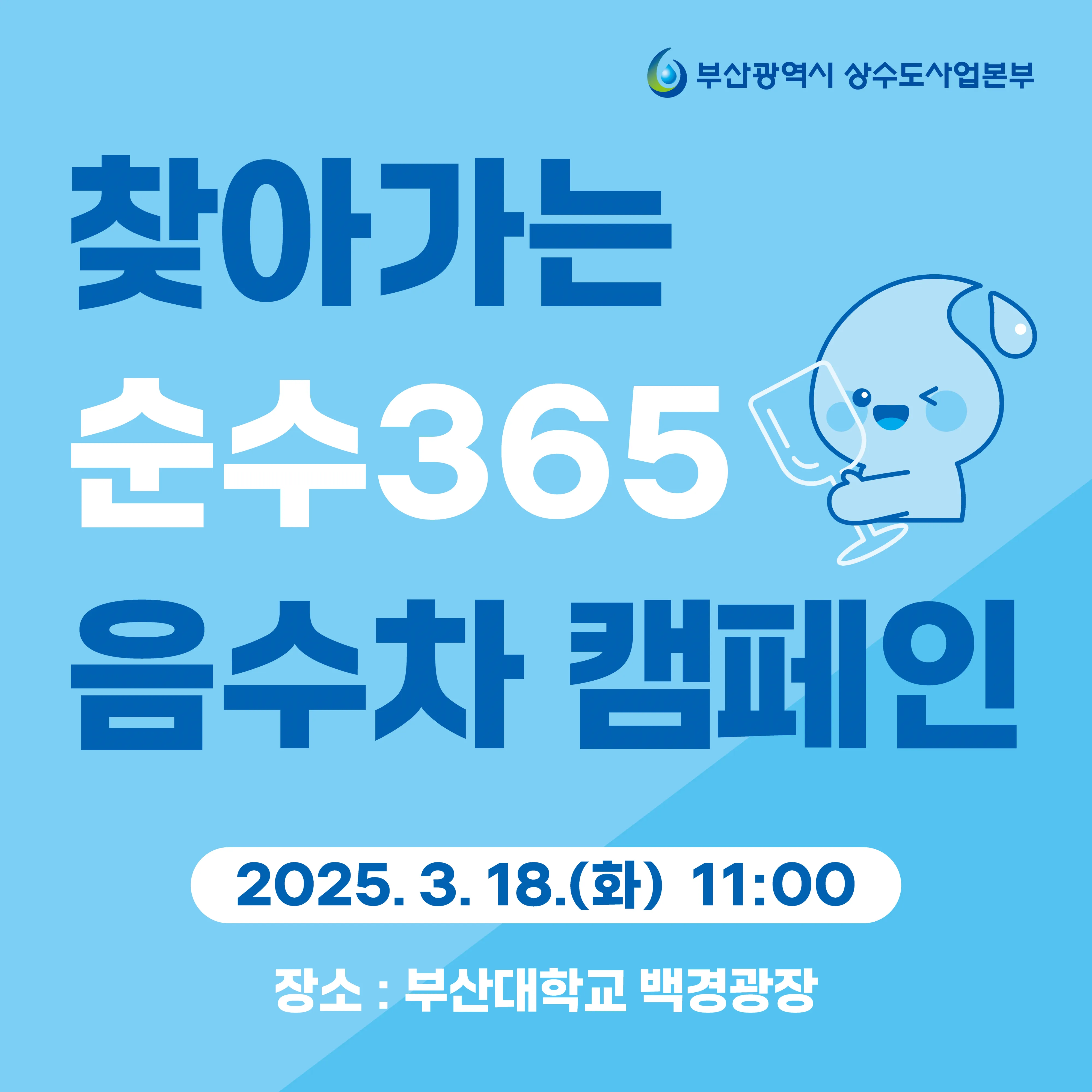 시는 17일부터 7일간 물 절약 실천 누리소통망(SNS) 이벤트를 진행하고 상수도사업본부도 찾아가는 순수 365 음수 차 캠페인, 환경정화 활동, 물 사랑 실천 운동, 기념 세미나 등도 진행한다.
