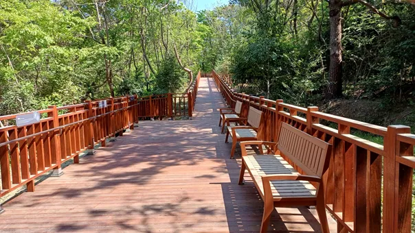 숲속 무장애 산책길은 길이 480m에 경사도 8% 이하로 휠체어와 유모차 등이 쉽게 이동할 수 있도록 만들었다. 산책 도중에 휴식을 취할 수 있도록 휴게 쉼터 3곳도 조성했다.