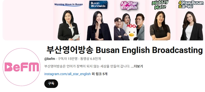 부산영어방송은 23일 유튜브 채널 (@befm)구독자 수가 15만명을 돌파했다고 밝혔다.
