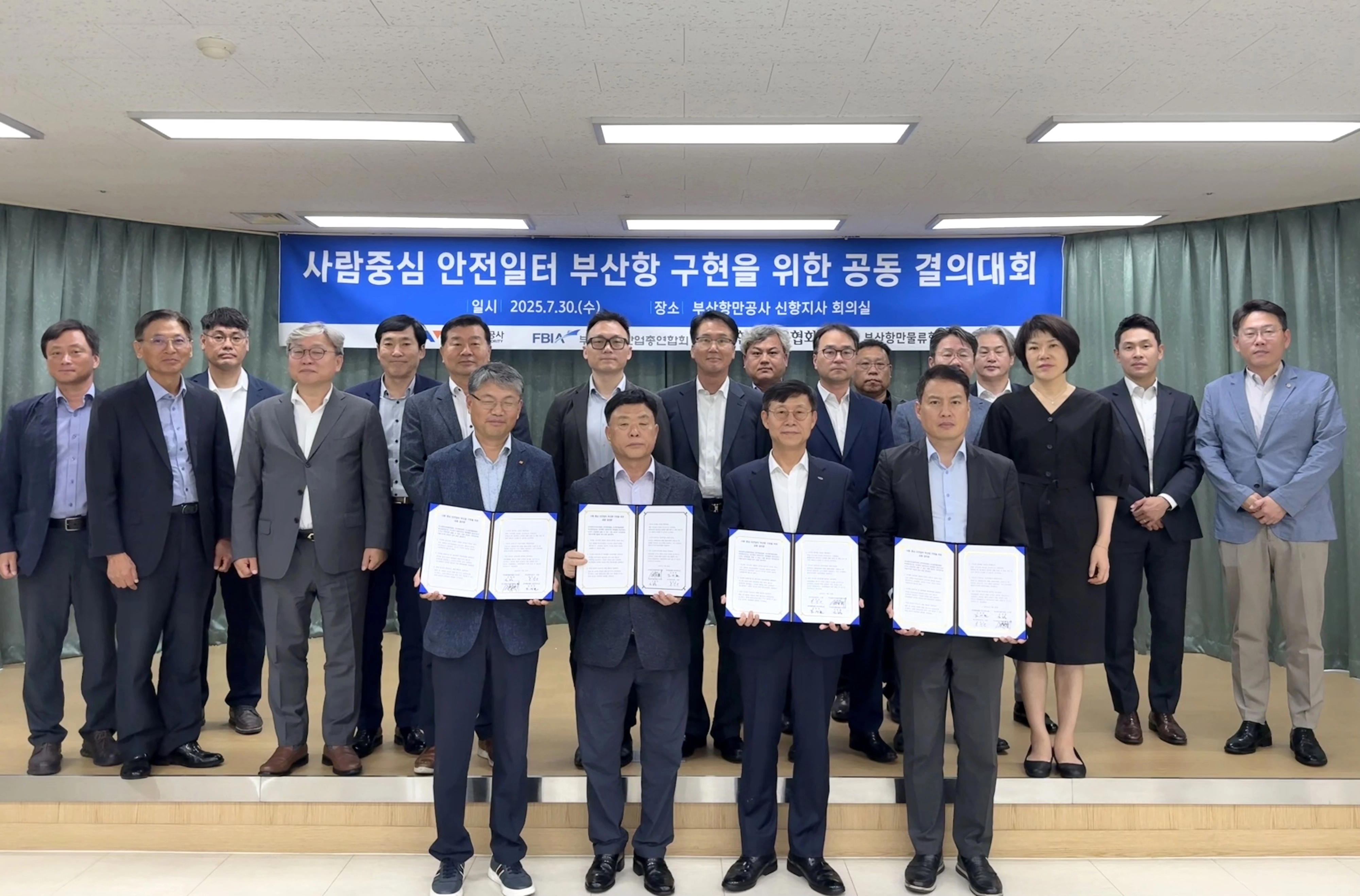 이날 결의문에는 김영득 부산항만산업총연합회 회장, 김세현 한국해운협회 부산사무소장, 김홍동 부산항만물류협회 이사장, 송상근 부산항만공사 사장이 서명했으며, 부두 운영사 대표들도 함께 안전 강화를 위한 공동의 의지를 다졌다.