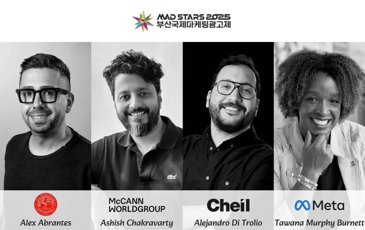 2025 부산국제마케팅광고제 심사위원장. 왼쪽부터 알렉스 아브란치스(Alex Abrantes), 아쉬시 차크라바르티(Ashish Chakravarty), 알레한드로 디 트롤리오(Alejandro Di Trolio), 타와나 머피 버넷(Tawana Murphy Burnett). 부산국제마케팅광고제 제공