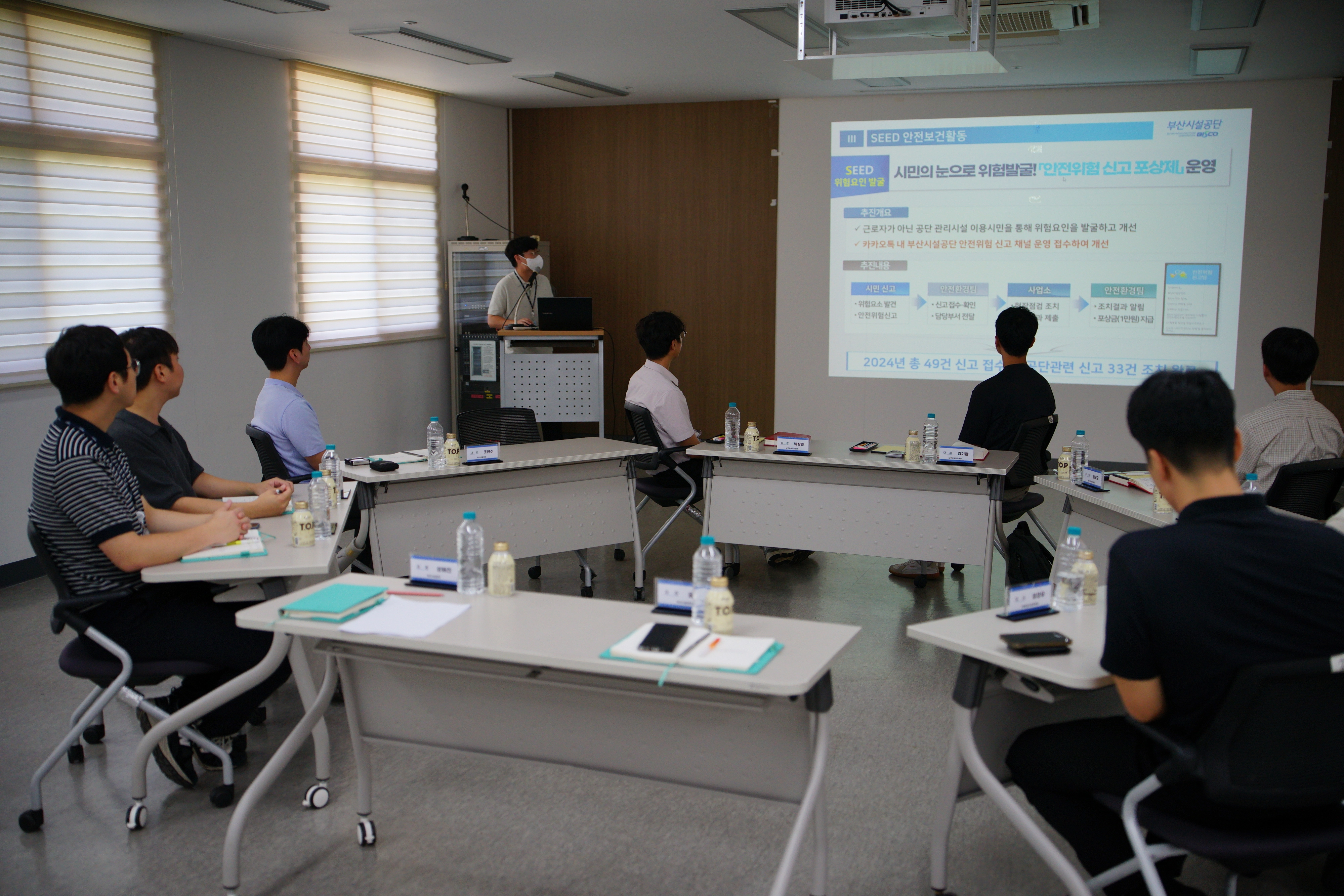 부산시설공단은 지난달 29일 부산시민공원 시민사랑채에서 공공기관 협의체(B-IS 얼라이언스) 실무진 기술교류회를 개최했다고 2일 밝혔다. 이번 협의에는 부산시설공단, 남구시설관리공단, 기장군도시관리공단 등 3개 기관의 안전보건 담당 실무자 11명이 참석했다.