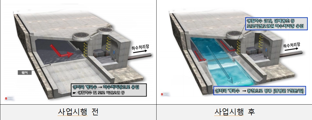 지금까지는 성지곡 수원지 계곡물이 부전천 복개 구간을 거치면서 생활하수, 비점오염원과 섞여 모든 물이 하수처리시설로 유입됐다.