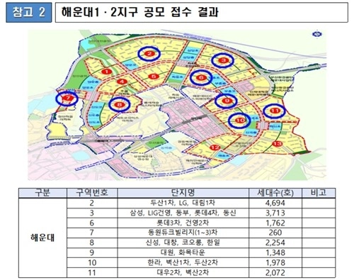 부산 해운대·화명 ‘통합재건축 선도지구 공모’에 3만2천가구 신청...선정물량의 5.7배 몰려