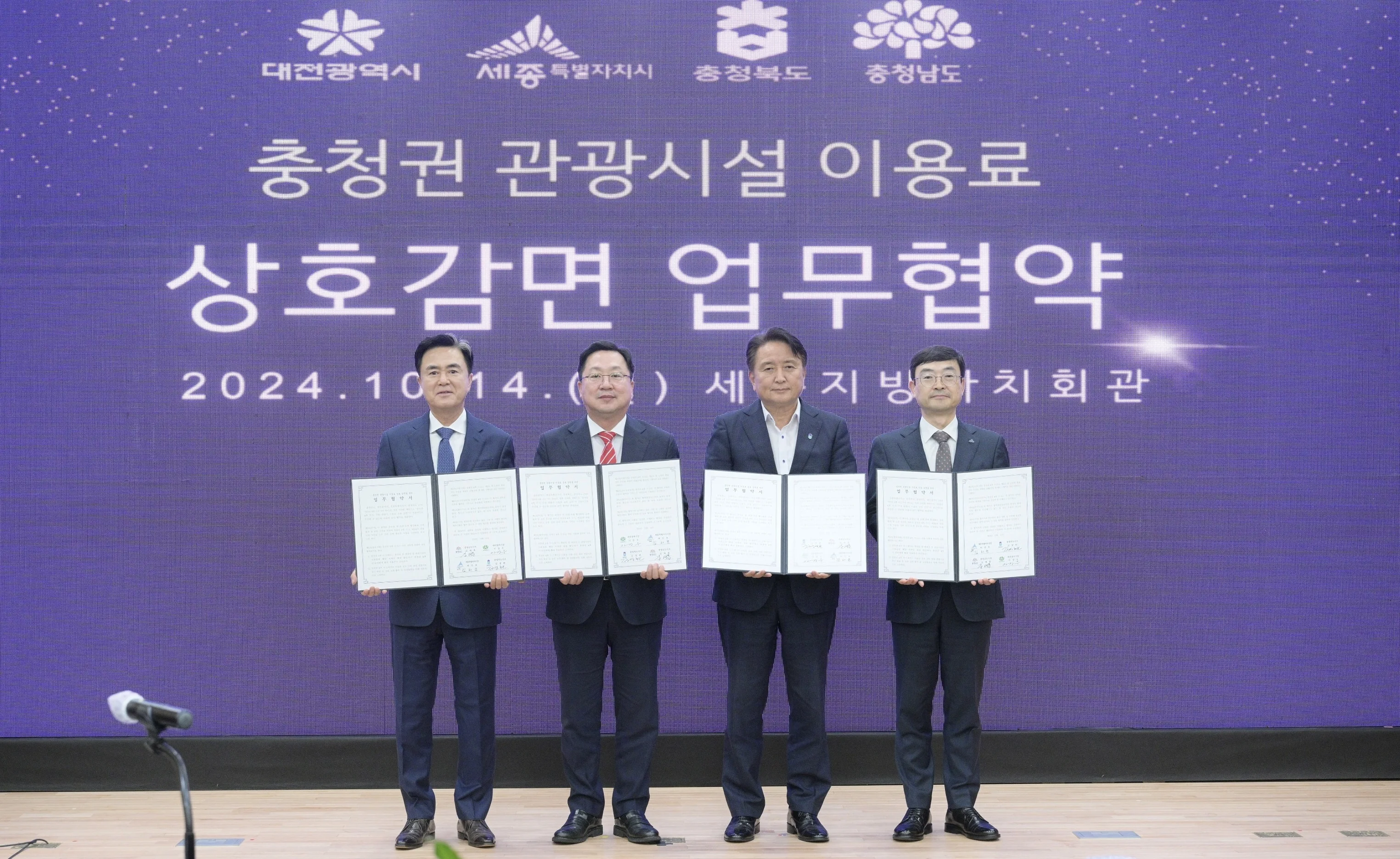 협약에 따라 4개 시도 주요 관광시설을 이용하는 충청권 주민은 10∼30% 이용료 감면 혜택을 받는다.
