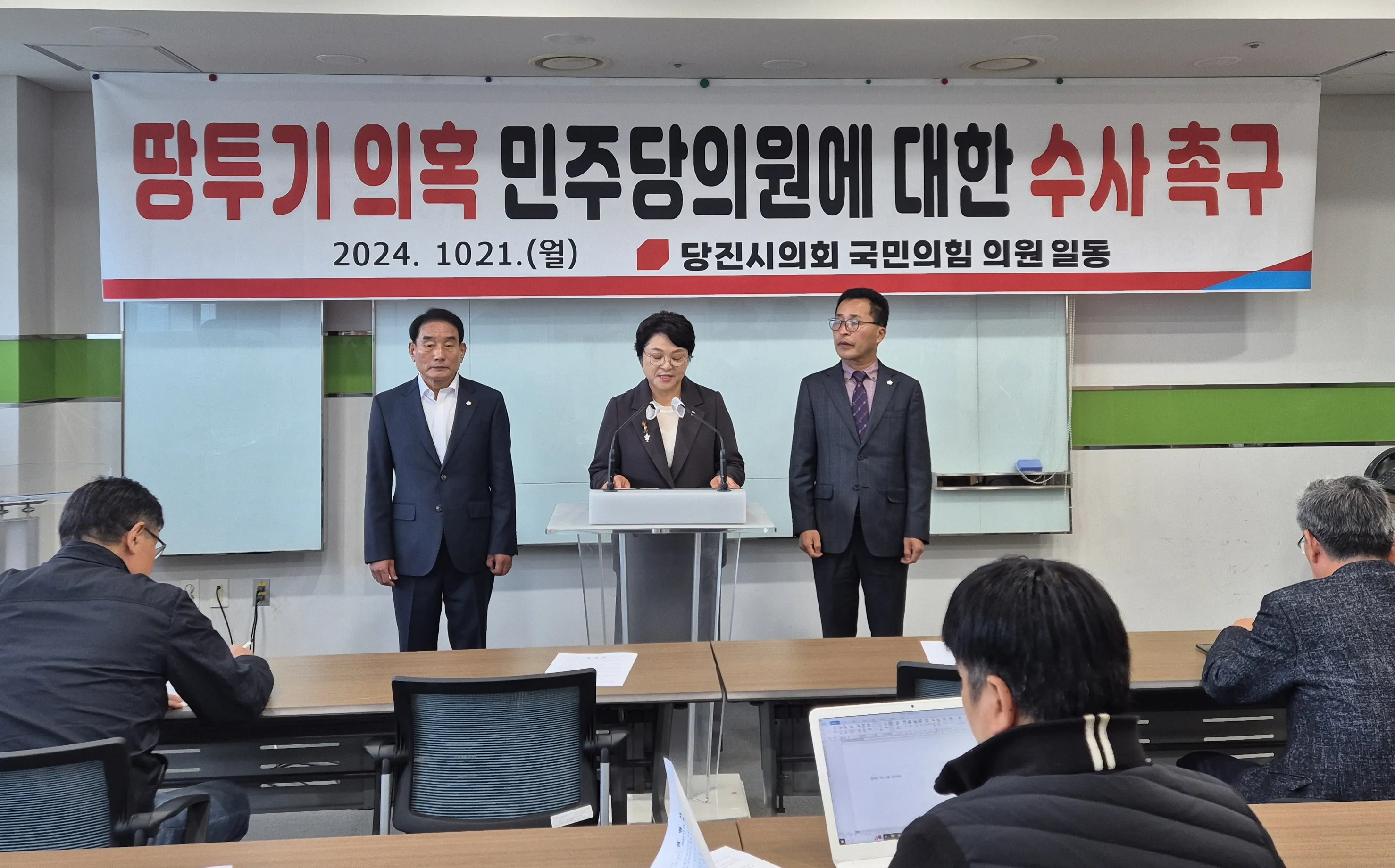 국민의힘 당진시의회 시의원들은 이날 기자회견을 열고 “보도에 따르면 전·현직 도·시의원이 2019~2020년 사이 당진시 일원 약 12만평(41만m²) 부지에서 진행되는 ‘당진3지구 도시개발사업’ 정보를 사전에 알고 가족과 지인 명의로 사업구역 내 토지를 매입했다고 한다”고 밝혔다.