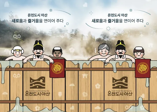 아산시가 출품한 세종의 온천욕 캐릭터 디자인은 임금이 백성을 사랑해서 만든 대중목욕탕을 상징화했다. 목욕물이 흘러넘치는 창의적인 재미 요소를 디자인으로 입혀 이색적인 흥미를 더했다.