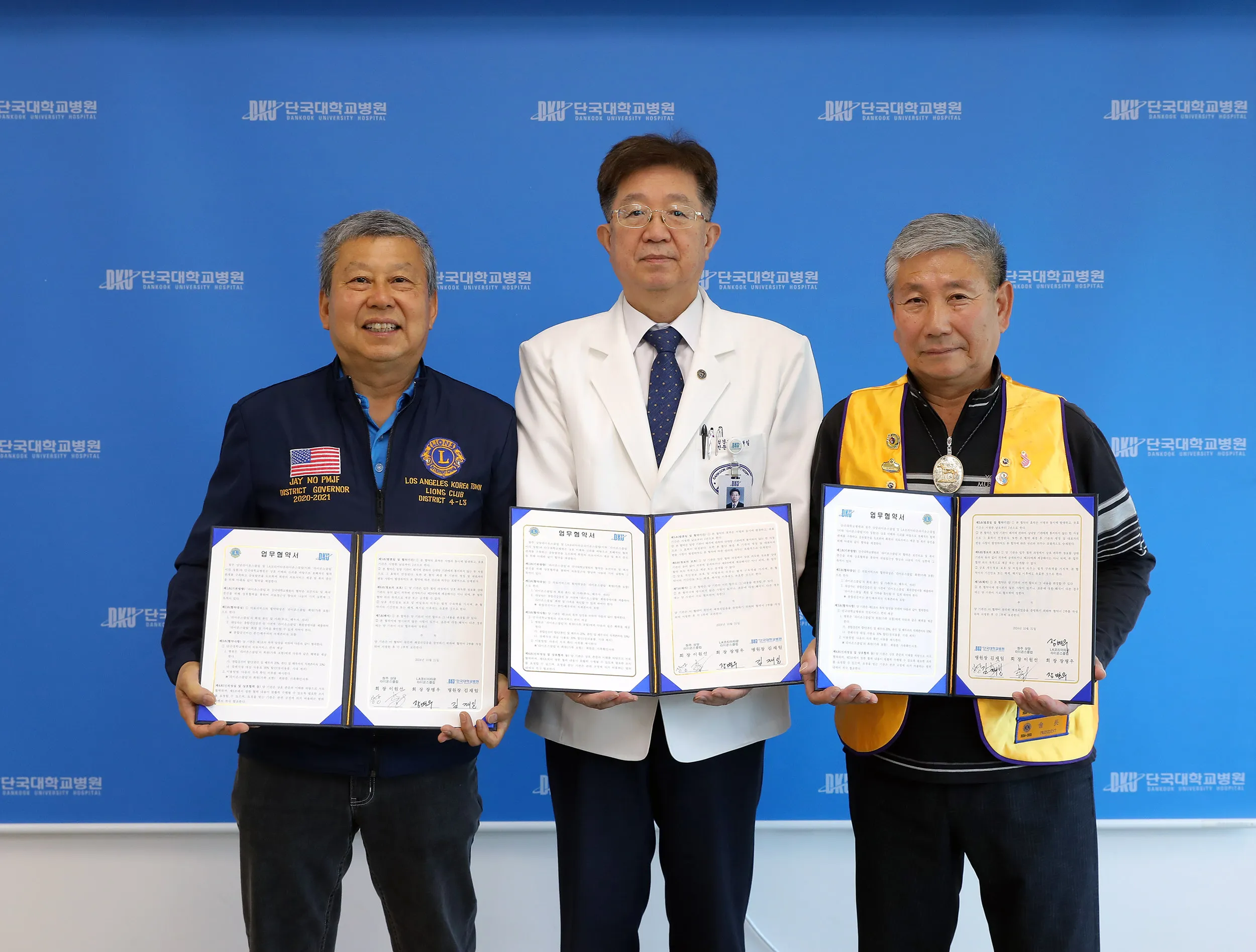 단국대병원(병원장 김재일)은 청주상당 라이온스클럽, LA코리아타운 라이온스클럽과 ‘시각장애인 각막수술지원 협약’ 업무협약을 체결했다고 1일 밝혔다.