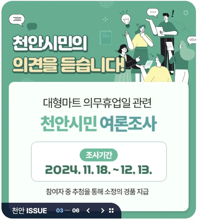 충남 천안시가 대형마트 의무휴업일 여론조사를 진행 중이다. 시 홈페이지 화면 갈무리.
