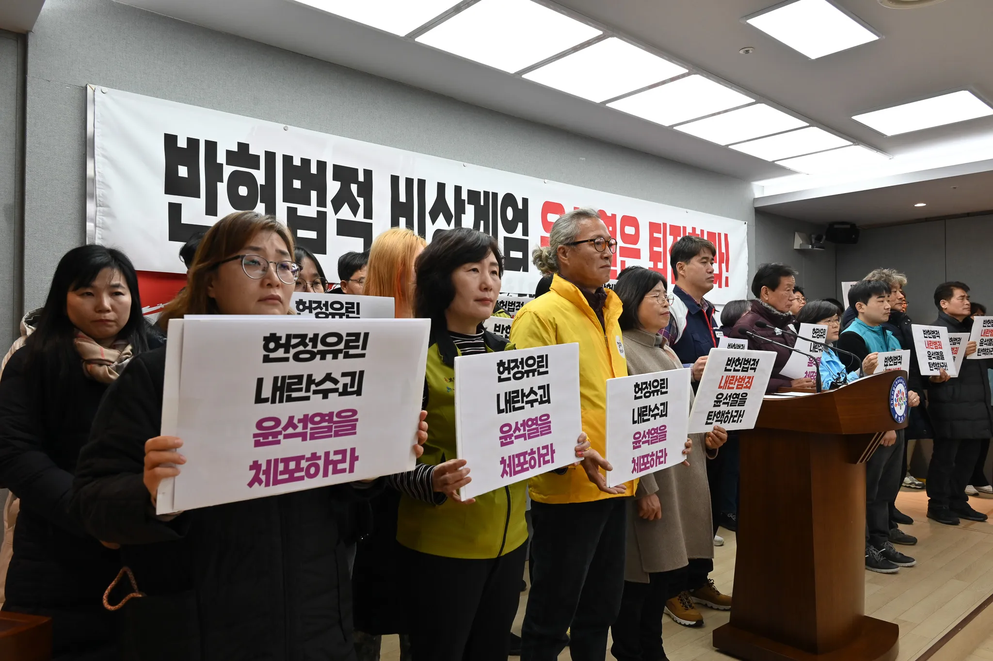 한편 충남지역 31개 시민사회단체로 구성된 충남시민사회단체연대회의는 4일 오전 충남도청에서 기자회견을 열고 “윤석열 대통령의 계엄선포는 반헌법적 폭거라며 즉각 퇴진하라”고 촉구했다.