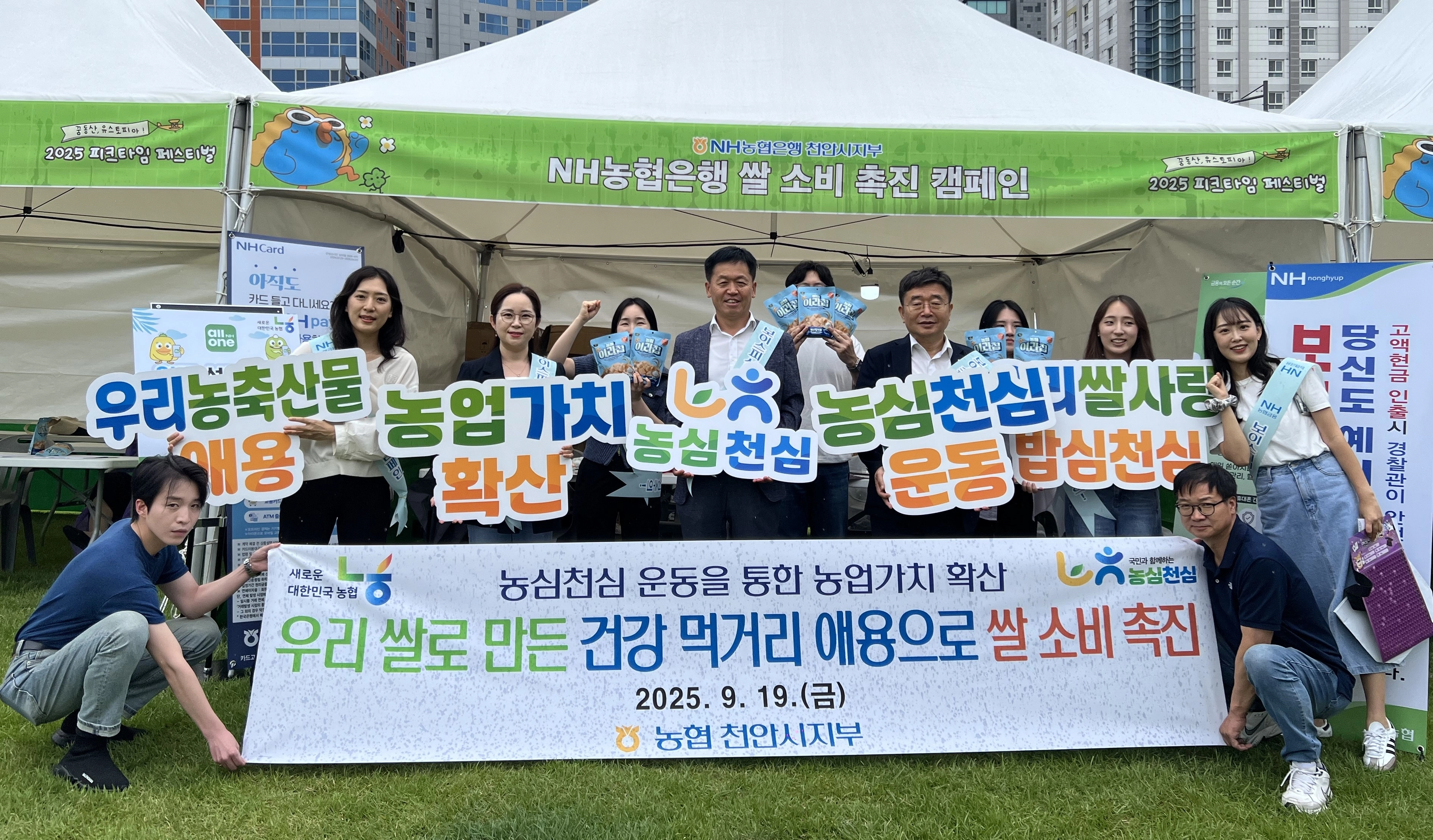 농협 천안시지부(지부장 조승국)는 19일 천안시민체육공원에서 열린2025 피크타임페스티벌에서 농심천심 쌀 과자 나눔 행사를 실시했다고 밝혔다.