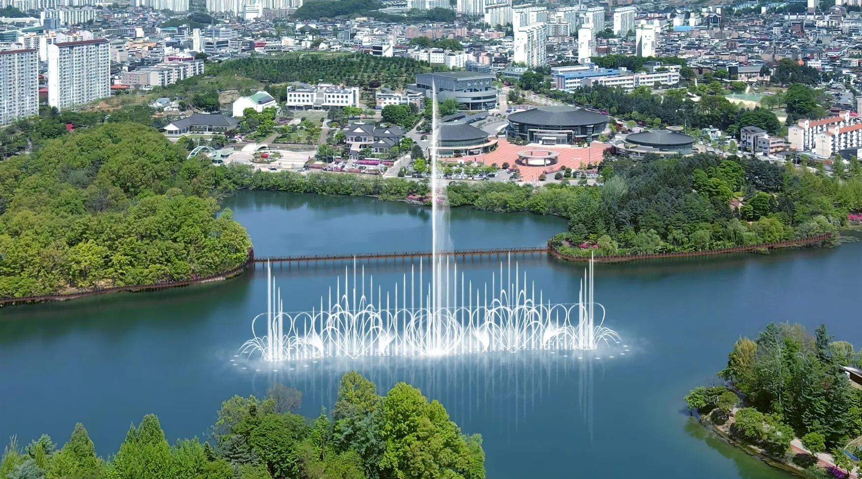 충북 충주시는 호암지에 길이 120m, 폭 12m 규모의 음악분수를 만든다고 16일 밝혔다. 음악분수는 오는 5월부터 가동되며, 국내 최대 규모다. 사진은 음악분수 조감도.