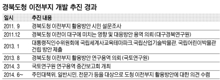 이에 대해 대구시 관계자는 “경북도청 이전부지에는 기존 대구에 있는 공공기관 등의 이전보다 새롭게 추가될 수 있는 것들이 들어와야 한다. 그래야만 대구 경제에 도움이 된다. 최종 활용방안은 연구용역 의뢰 결과가 나온 뒤 전문가, 주민들의 의견 수렴 절차를 거쳐 마련될 것”이라고 말했다.