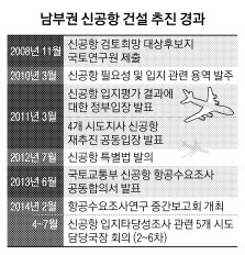 연구용역은 최근 마무리됐다. 지난 13일에는 국토부가 서울 한국공항공사에서 전문가 회의를 열었다. 5개 시·도 공무원을 제외한 수도권 전문가, 5개 시·도 추천 전문가, 연구용역팀, 국토부 관계자 등 20명 정도가 참석한 것으로 알려졌다. 이 자리에서 국토부는 영남권 국제선 이용객이 계속 늘고 있고 김해공항은 곧 포화상태에 이르러 영남권에 신공항 건설의 필요성이 있다는 결론에 도달했다고 밝힌 것으로 전해지고 있다.