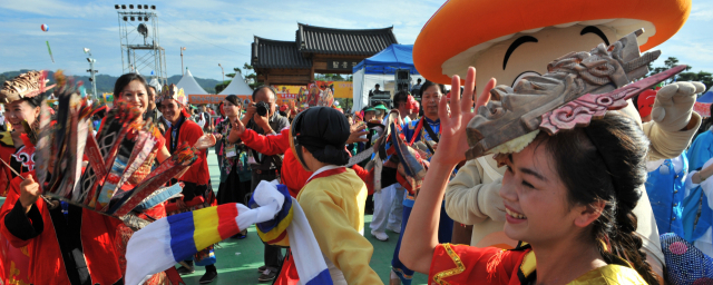 해마다 축제 공식 마스코트로 인기를 끄는 탈놀이단은 축제장 곳곳에서 시민과 관광객의 신명을 돋운다.