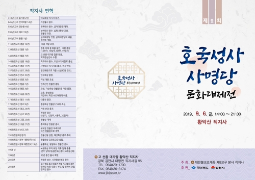 앞서 5일엔 ‘사명대사 문집에 나타난 선교(禪敎)의 가르침’을 주제로 한 학술세미나와 직지신인문학상, 청소년 백일장 등 부대행사가 열린다.