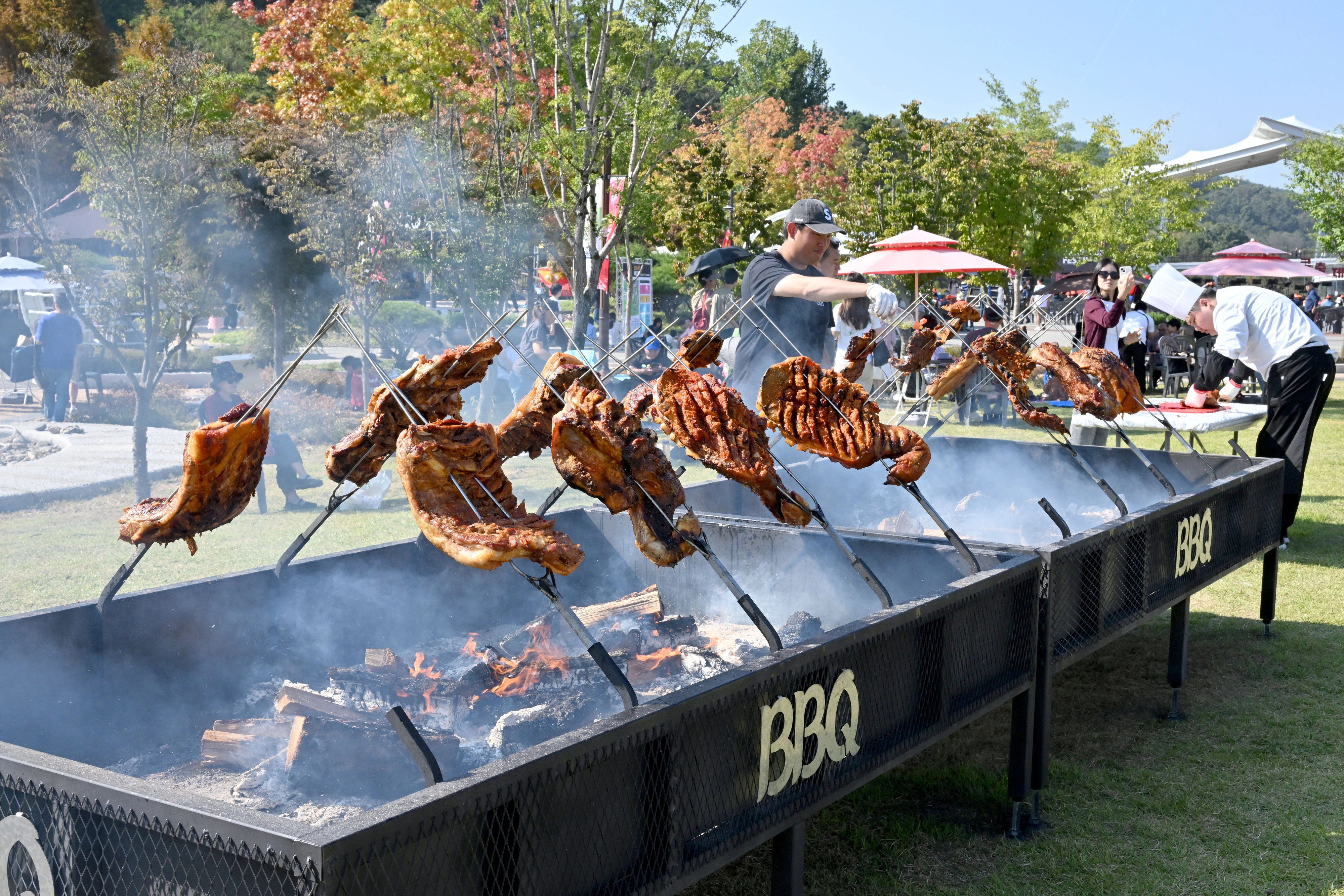 메인 프로그램인 ‘군위 고기존’에서는 방문객이 직접 한우와 한돈을 구매해 셀프 바비큐를 체험할 수 있다. ‘먹거리존’은 미국 텍사스 스타일 바비큐, 터키 케밥, 독일 정통 소시지 등 글로벌 메뉴와 함께 솥뚜껑 목살 스테이크·직화 족발 등 특색있는 요리를 선보인다.