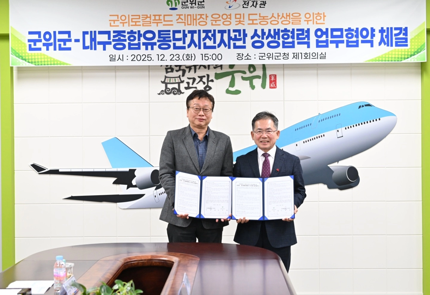 군위군은 23일 군청 제1회의실에서 대구종합유통단지 내 전자관과 군위로컬푸드직매장 운영을 위한 업무협약을 체결했다. 협약에 따라 군위군과 전자관은 내년 1월부터 군위로컬푸드 직매장의 본격 운영에 들어간다.