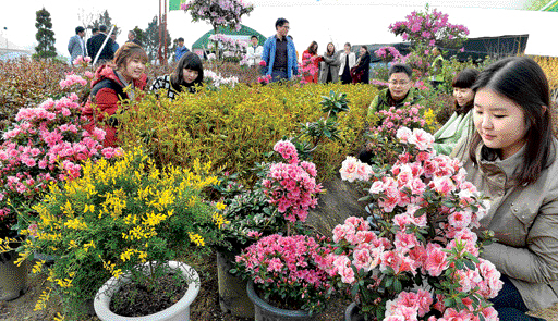 17일 경기 하남시 동남로 나무 시장을 찾은 시민들이 철쭉 등 묘목을 구경하고 있다. 산림조합중앙회는 나무심기 기간(2월 20일~4월 30일)을 맞아 전국 128곳에 나무 시장을 운영한다.