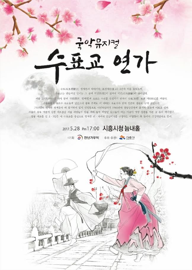창작국악뮤지컬 ‘수표교연가’가 경기 시흥시청 늠내홀 무대에 오른다.시흥시는 오는 28일 전문가들로부터 극찬을 받은 창작국악뮤지컬 ‘수표교연가’를 시흥시청 늠내홀에서 공연한다고 21일 밝혔다.