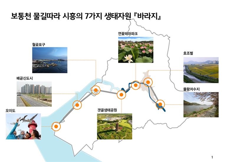 시흥시는 보통천 물길을 따라 호소~하천~갯골~해양으로 이어지는 7대바라지의 생태자원과 역사·문화·관광자원을 연계한다는 방침이다.