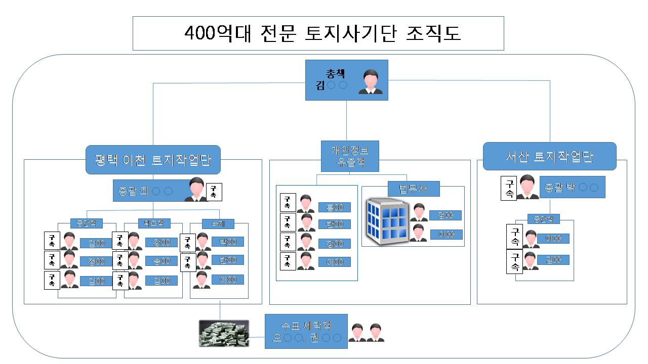 경찰은 또 이번 토지사기단 수사를 진행하던 중 오랫동안 권리 이전이 없던 땅의 소유자 정보를 조회한 홍모(55)씨 등 4명을 개인정보보호법 위반 등 혐의로 구속하고, 모 동사무소 사회복무요원 이모(22)씨를 불구속 입건했다. 홍씨 등은 이씨의 아버지에게 부탁해 토지주 7명의 한자 이름· 주소·지문 등의 정보를 아들에게 조회하도록 한 혐의를 받고 있다. 홍씨 일당이 조회해 습득한 7건의 개인정보 중 토지사기단에 흘러들어간 내용은 확인되지 않았다.