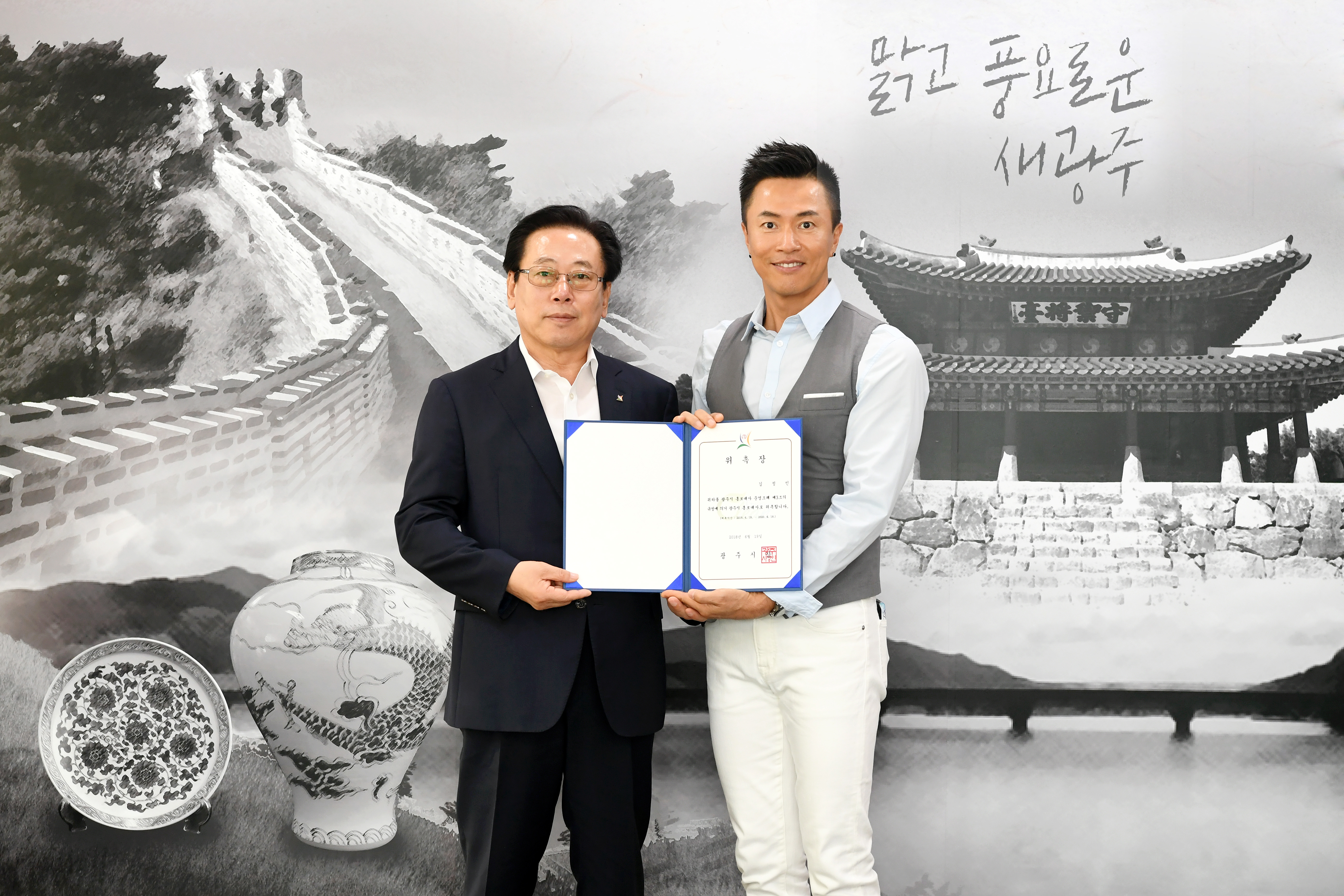 조억동 시장은 이날 오후 집무실에서 광주시 홍보대사 위촉장을 수여했다.