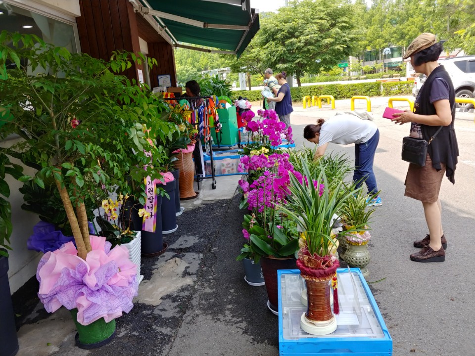 아름다운가게 김포점에서 정하영 김포시장 당선자의 축하화분 기증특별전을 진행했다. 김포시 제공