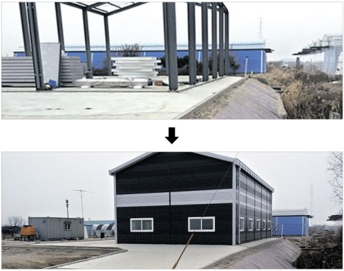 인공 수로로부터 1m 떨어져 공사를 시작했지만 고양시의 경직된 행정으로 이미 세운 철골(위)을 철거한 뒤 2m 거리를 두고 재시공한 모습(아래).