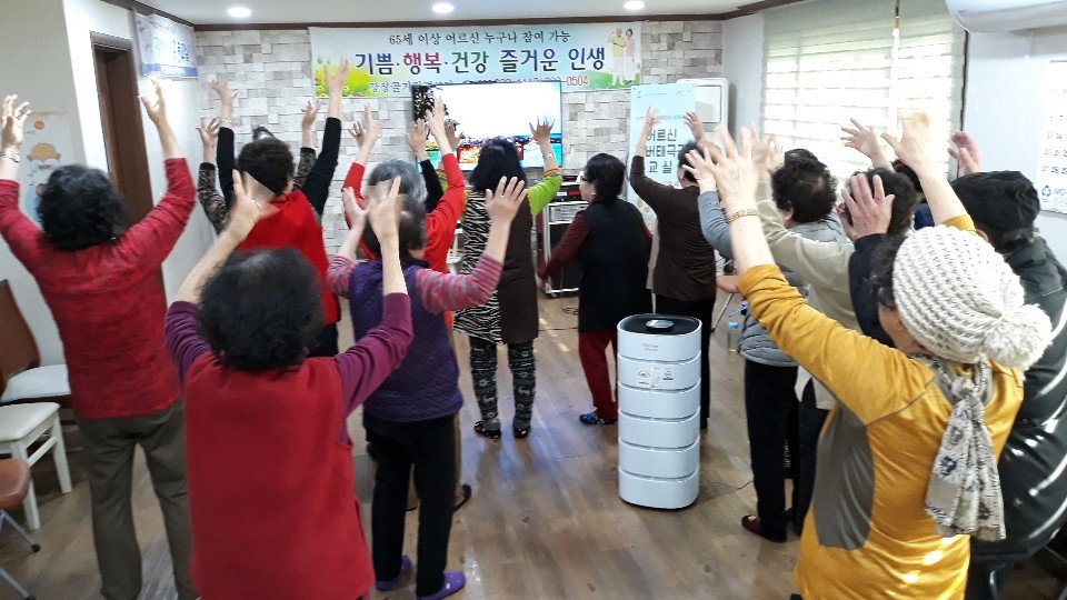공기청정기가 설치된 경로당에서 어르신들이 건강 프로그램에 참여하고 있다. 부천시 제공