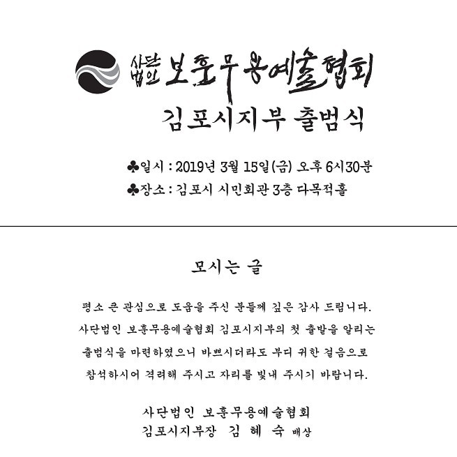 현재 김포시 지부 회원은 120명으로, 앞으로 다채로운 행사를 통해 김포시민들에게 사랑받는 무용예술협회가 될 것으로 기대된다.