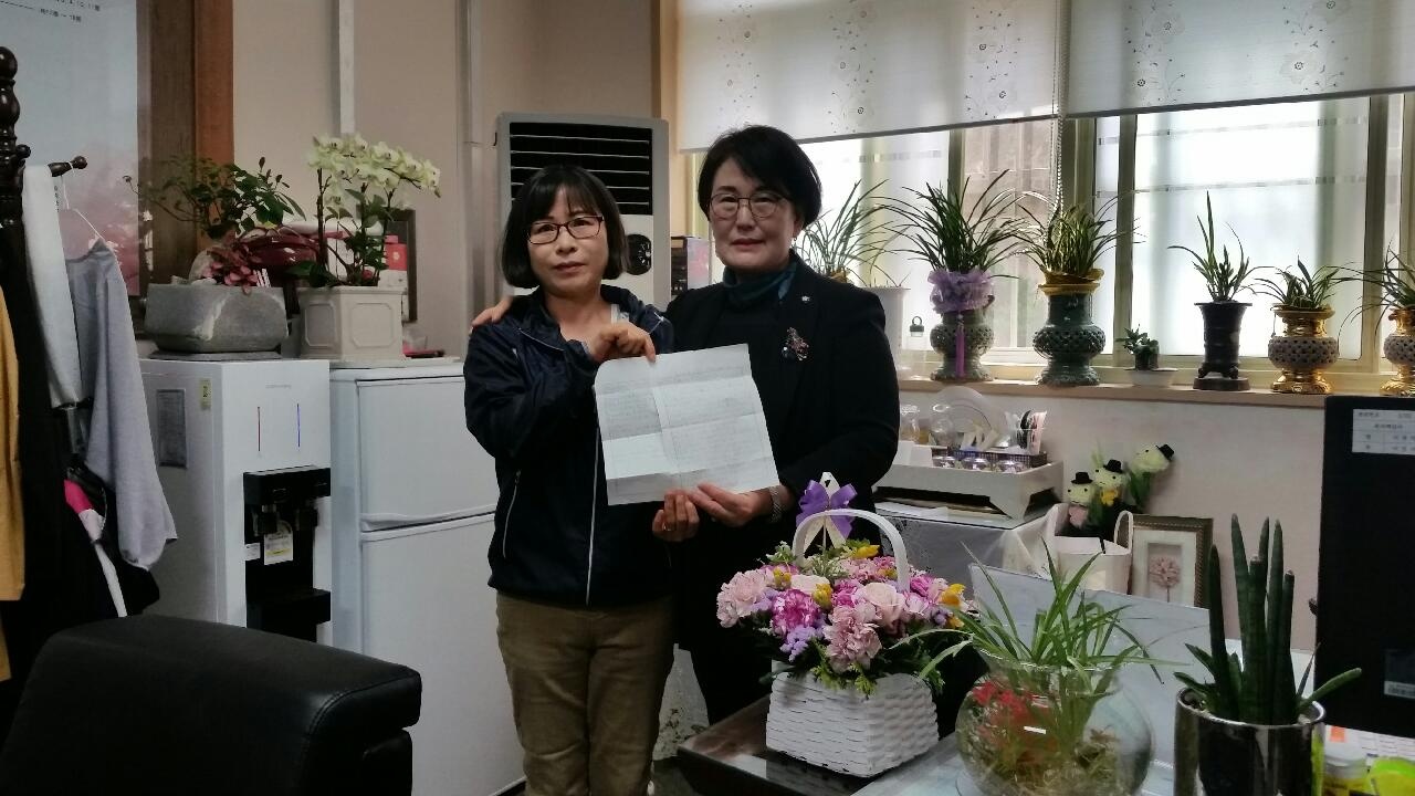 목포에 사는 이씨 어르신(82·남·)이 4년간 생사를 알 수 없던 아들의 소식을 알게 도와준 이미자 3통장(여·52)에게 전해 달라며 태평4동에 보내온 편지였다.