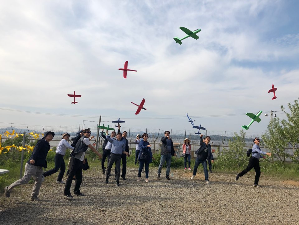 민통선 분단체험학교 김영운 교장 안내에 따라 진행된 이날 행사에서 염하강 인근 문수산성을 답사했다. 이어 저어새와 두루미 군락지인 유도를 조망하고 DMZ 철조망 따라 걷기와 6·25 당시 인민군 상륙 지점인 강령포를 답사했다. 이곳에서 통일 리본달기와 통일염원비행기 날리기 등 체험 활동이 이어졌다.