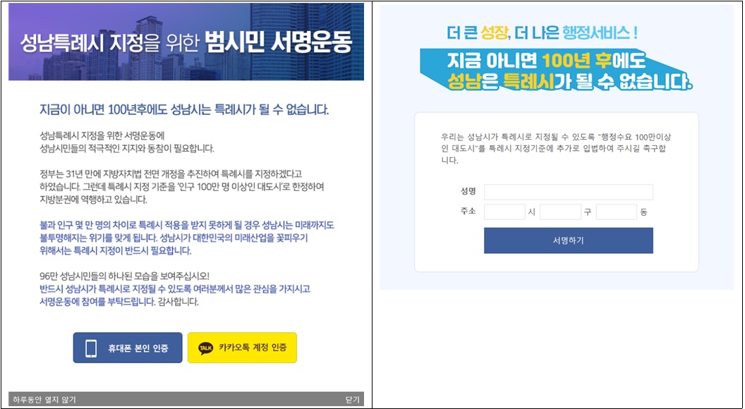 성남특례시 지정 위한 범시민 온라인 서명 창구 개설