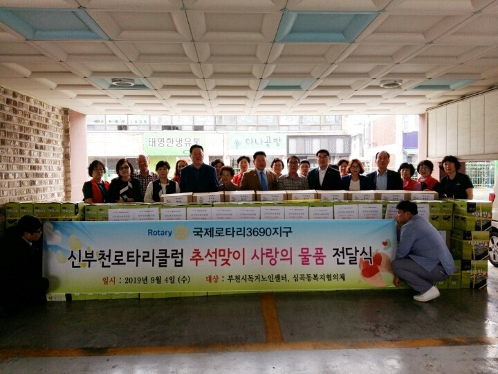 신부천로타리 클럽은 2015년 창립 이후 매달 지역사회 독거노인들에게 일품요리를 준비해 식사를 대접하고 있다. 명절 때면 생필품 등을 어르신들에게 전달하며 봉사와 나눔을 실천하고 있다.