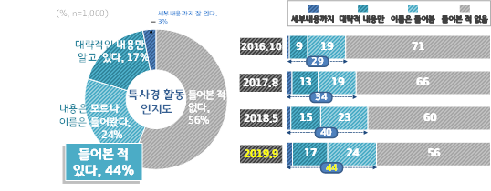 특사경 활동에 대해 알고 있는지에 대한 질문에는 응답자의 44%만이 ‘들어본 적 있다’고 응답, 이에 대한 홍보를 강화할 필요성이 있는 것으로 확인됐다.