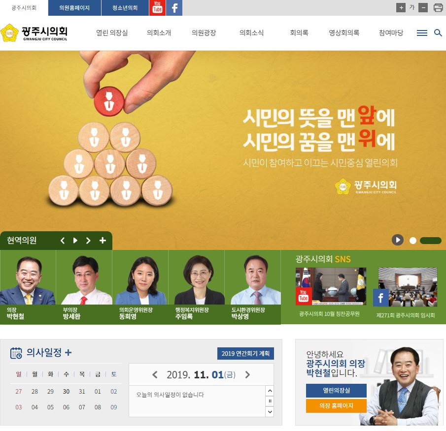 광주시의회 홈페이지 전면 개편