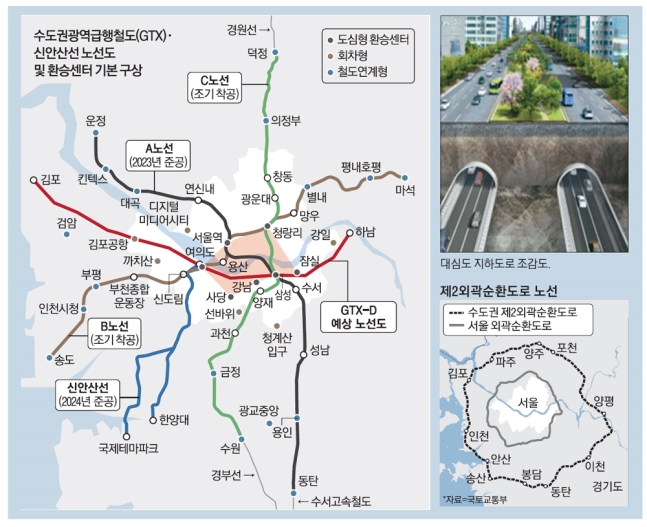 GTX-D 라인은 인천과 김포 한강신도시, 인천 검단의 경기 서부권을 시작으로 마곡~여의도~강남을 지나 경기 동부의 잠실 하남으로 연결되는 노선이다.