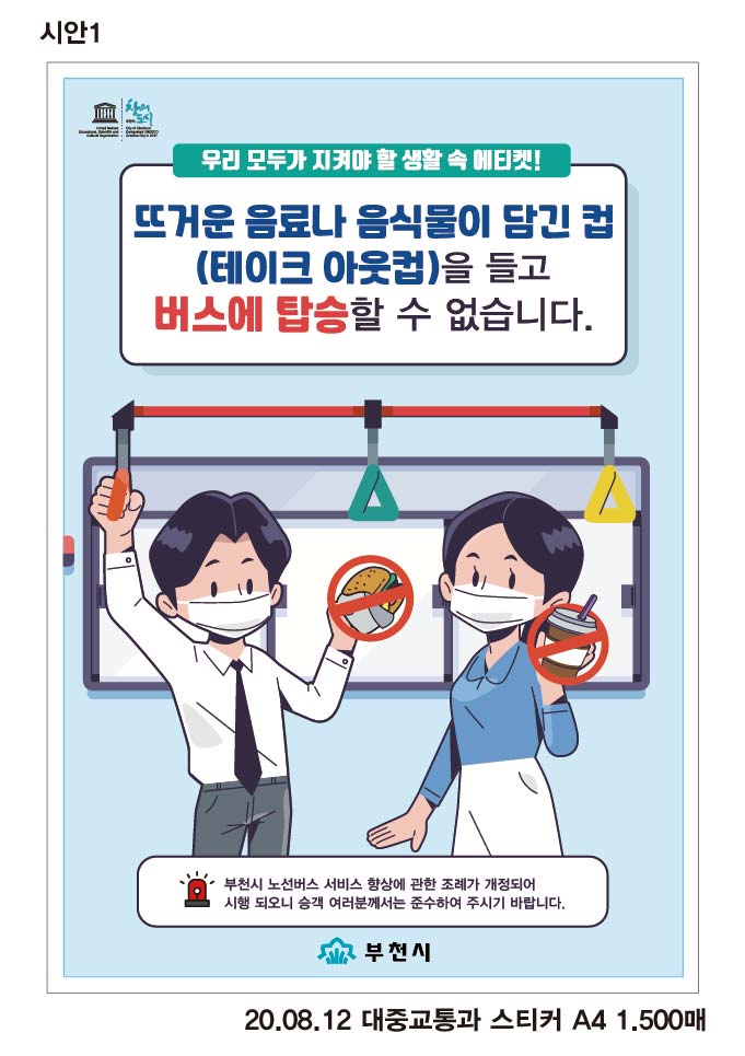 부천버스 음식물 담긴 일회용 컵 들고 탑승 안된다
